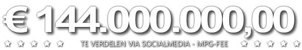 Te verdelen via Socialmedia € 144.000.000,00. Met mijn Mpga Deelname Platform kunnen nu 8000 nieuwe leden meedoen aan het Internationaal MegaCashBack Programma. De winstverdeling wordt verdeeld via Socialmedia-Marketing.